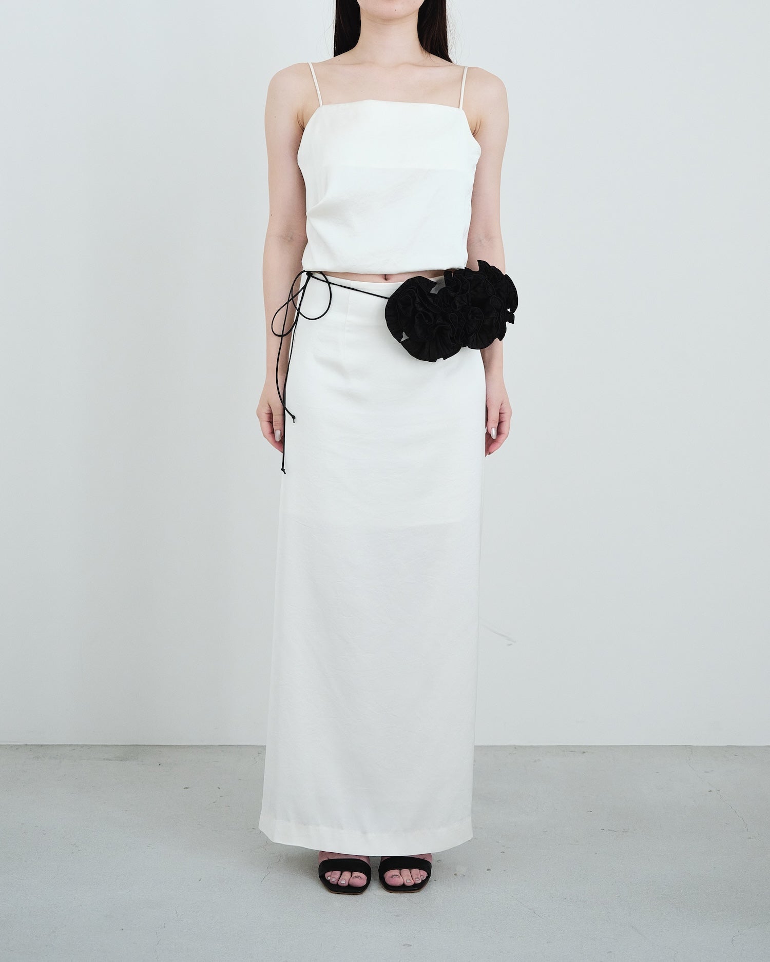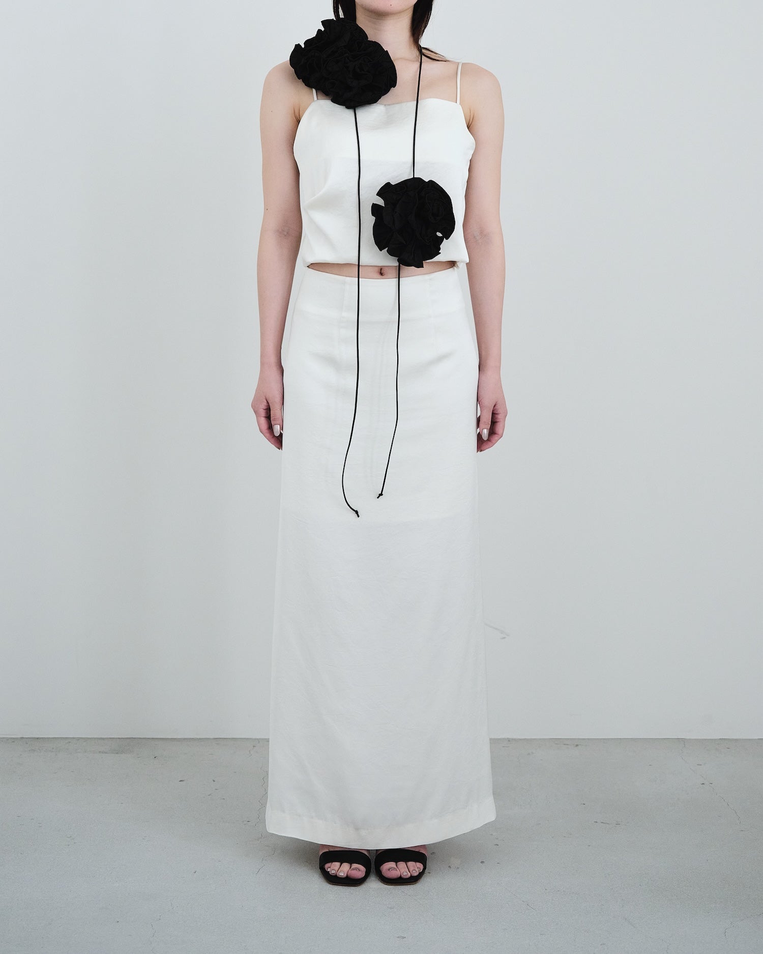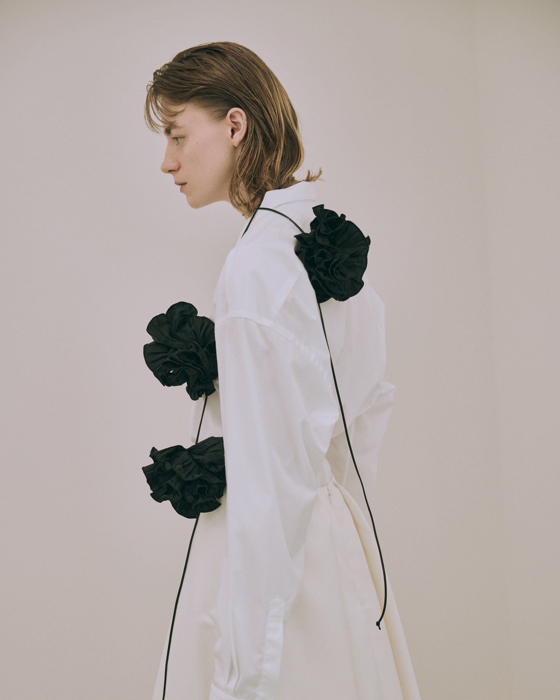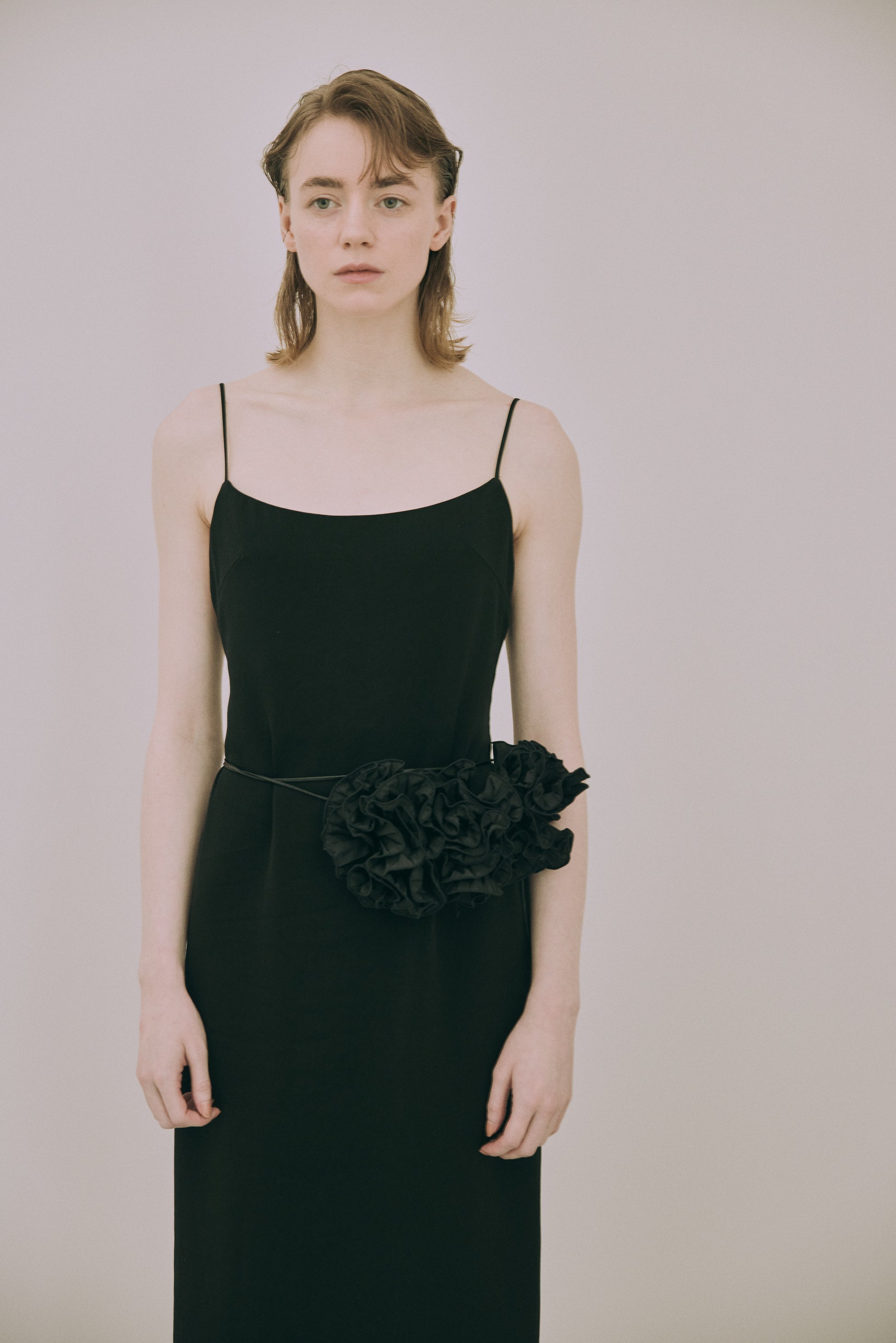 プリーツ加工が施されたタフタのラウンドモチーフネックレス。モチーフは可動式のためお好みの配置が可能です首に巻いたりウエストに巻いたり様々な使い方を楽しんでいただけるアイテムです。