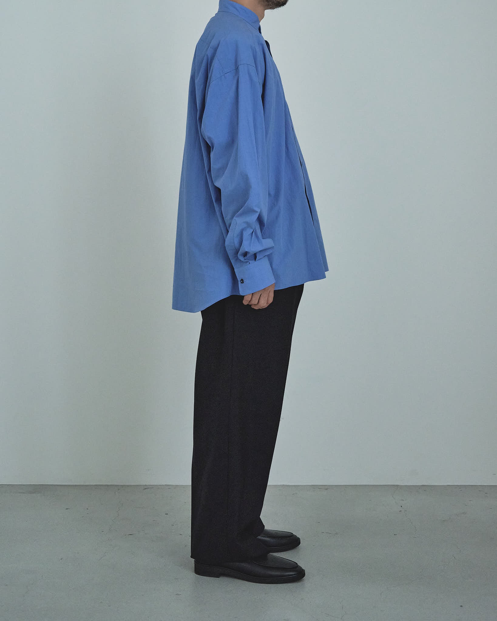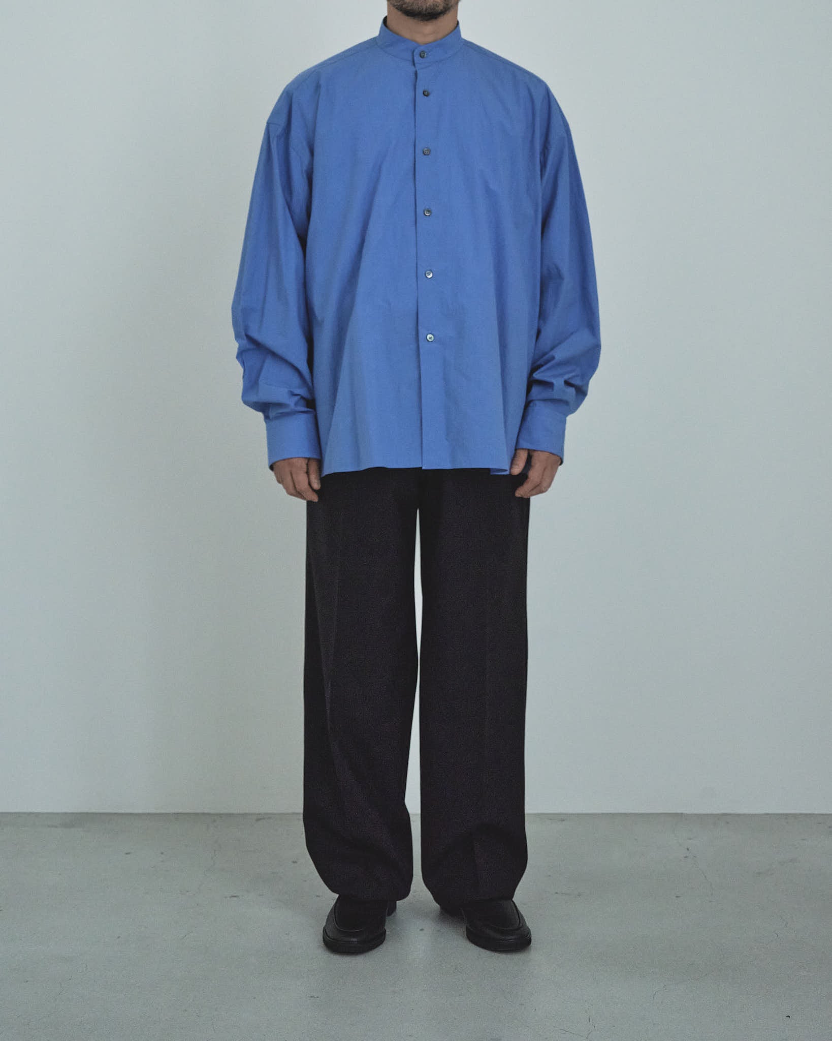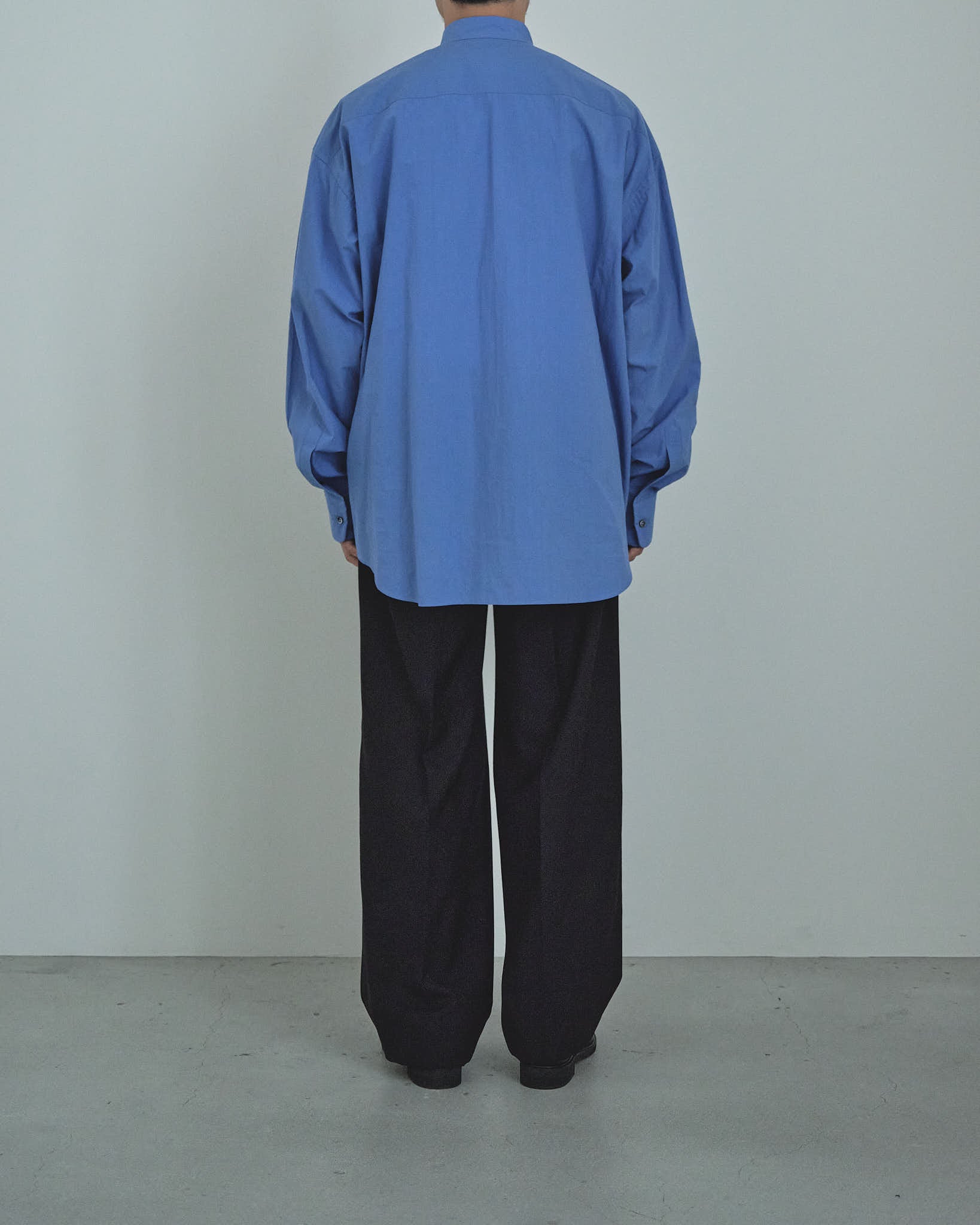 [受注生産] 80/1タイプライタースムースリンクルクロスL/Sオーバーサイズバンドカラーシャツ