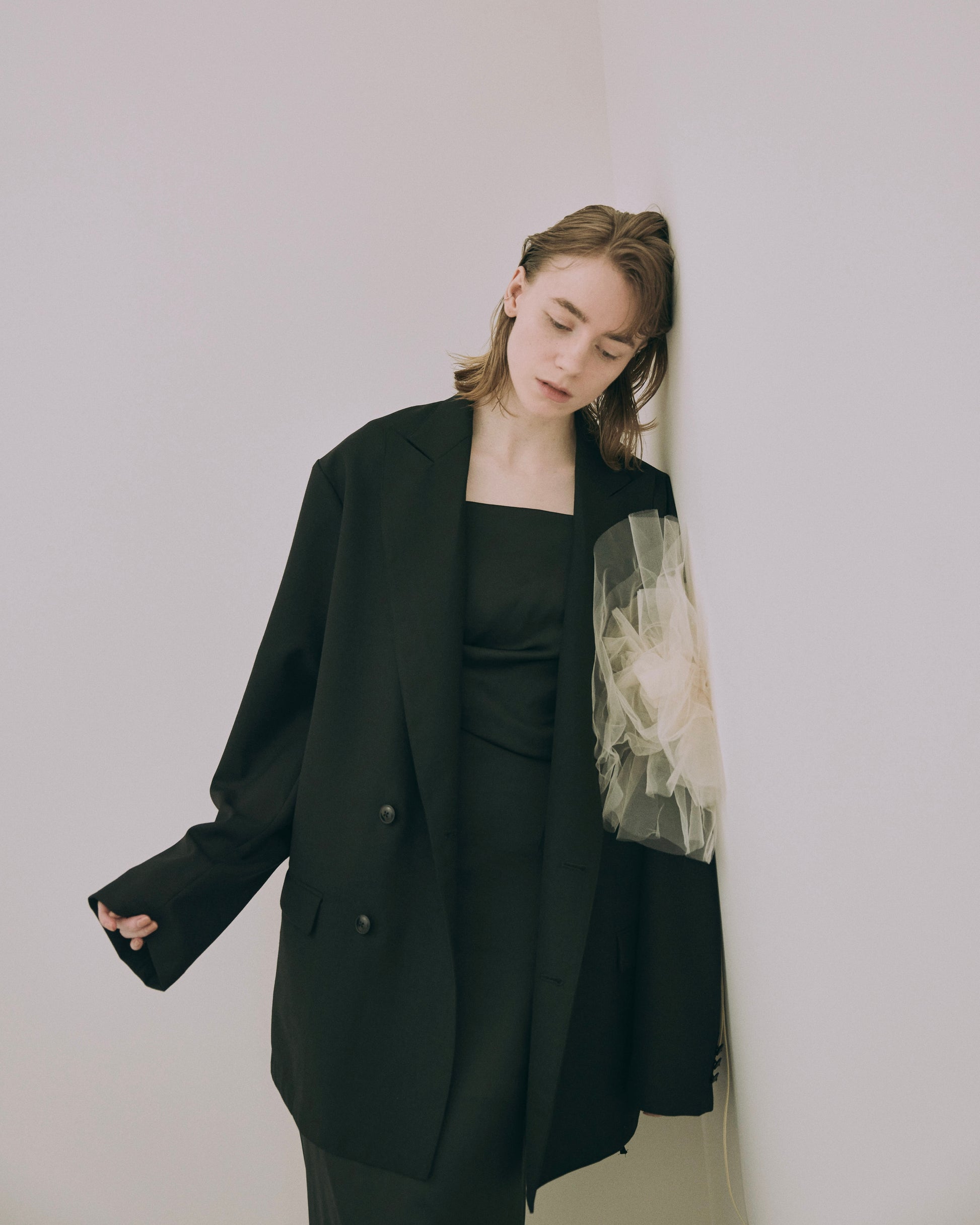 さらに、ウェディングシーンにもおすすめ。花嫁の二次会スタイルやブライダルフォトでのドレスダウンコーデ、ゲストドレスとしても上品に映えるデザインです。シンプルながら華やかさを添えてくれる一枚は、特別な一日を洗練された印象に仕上げてくれます。