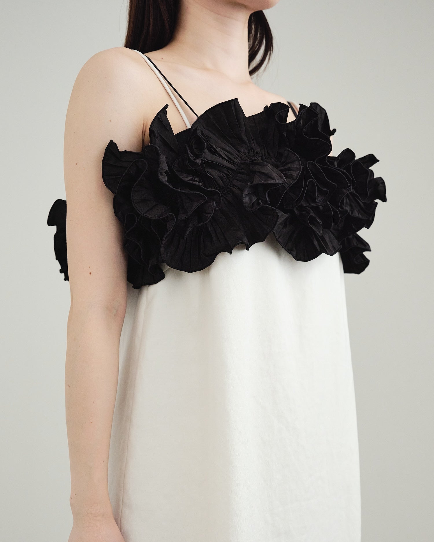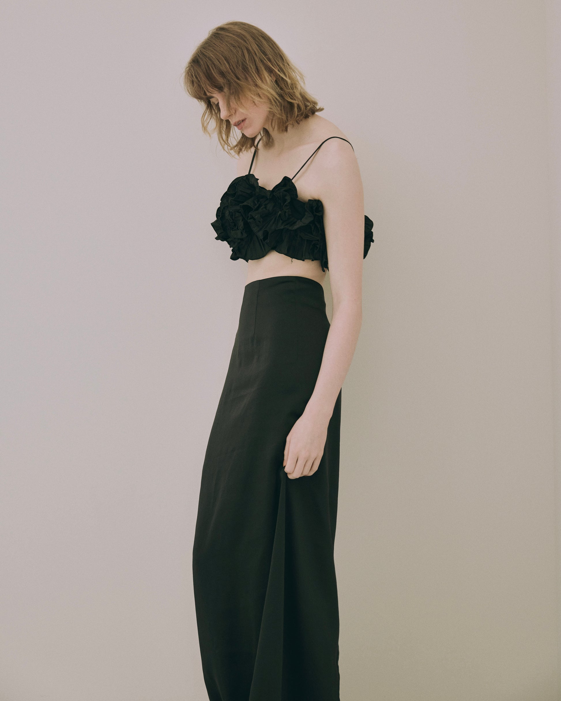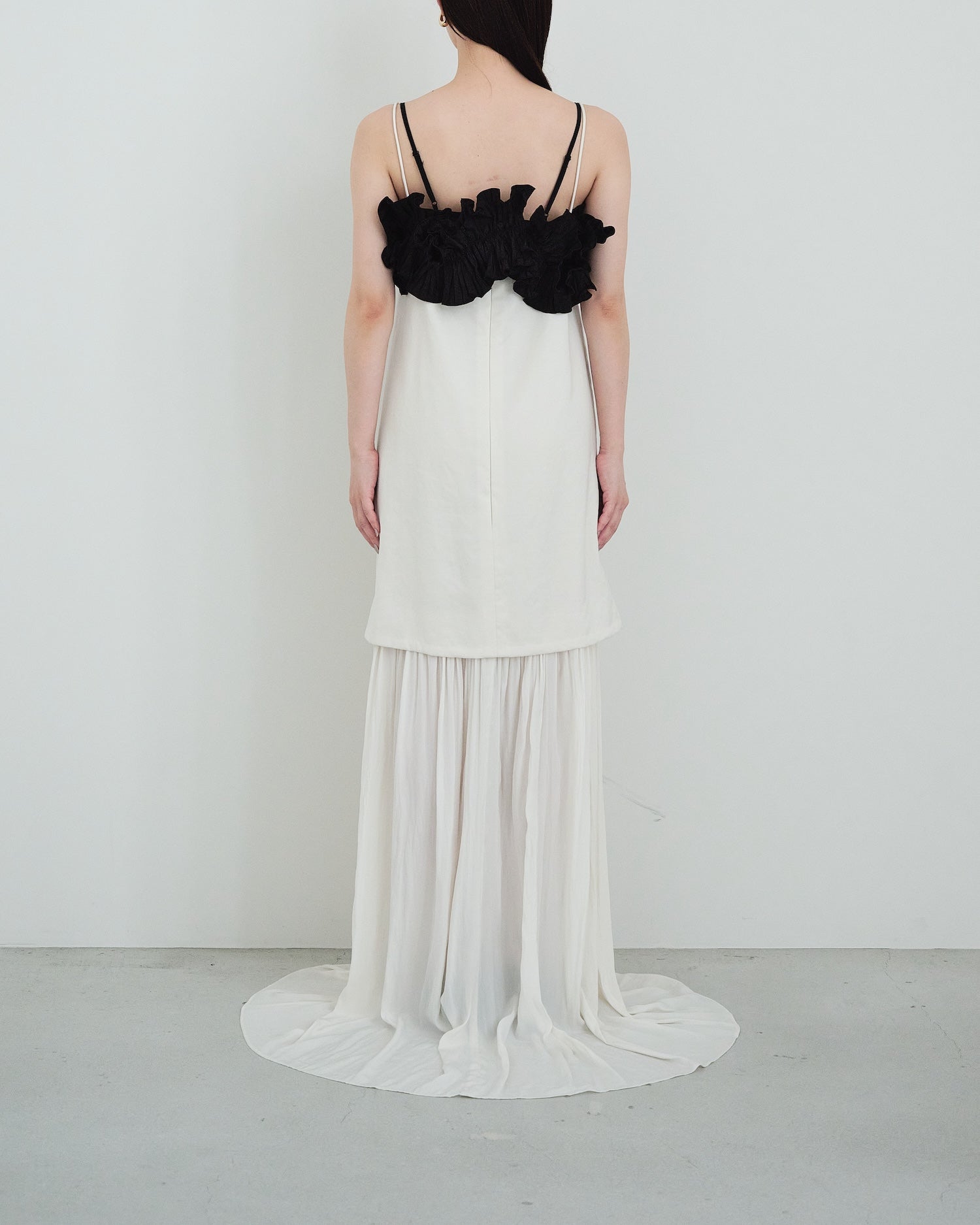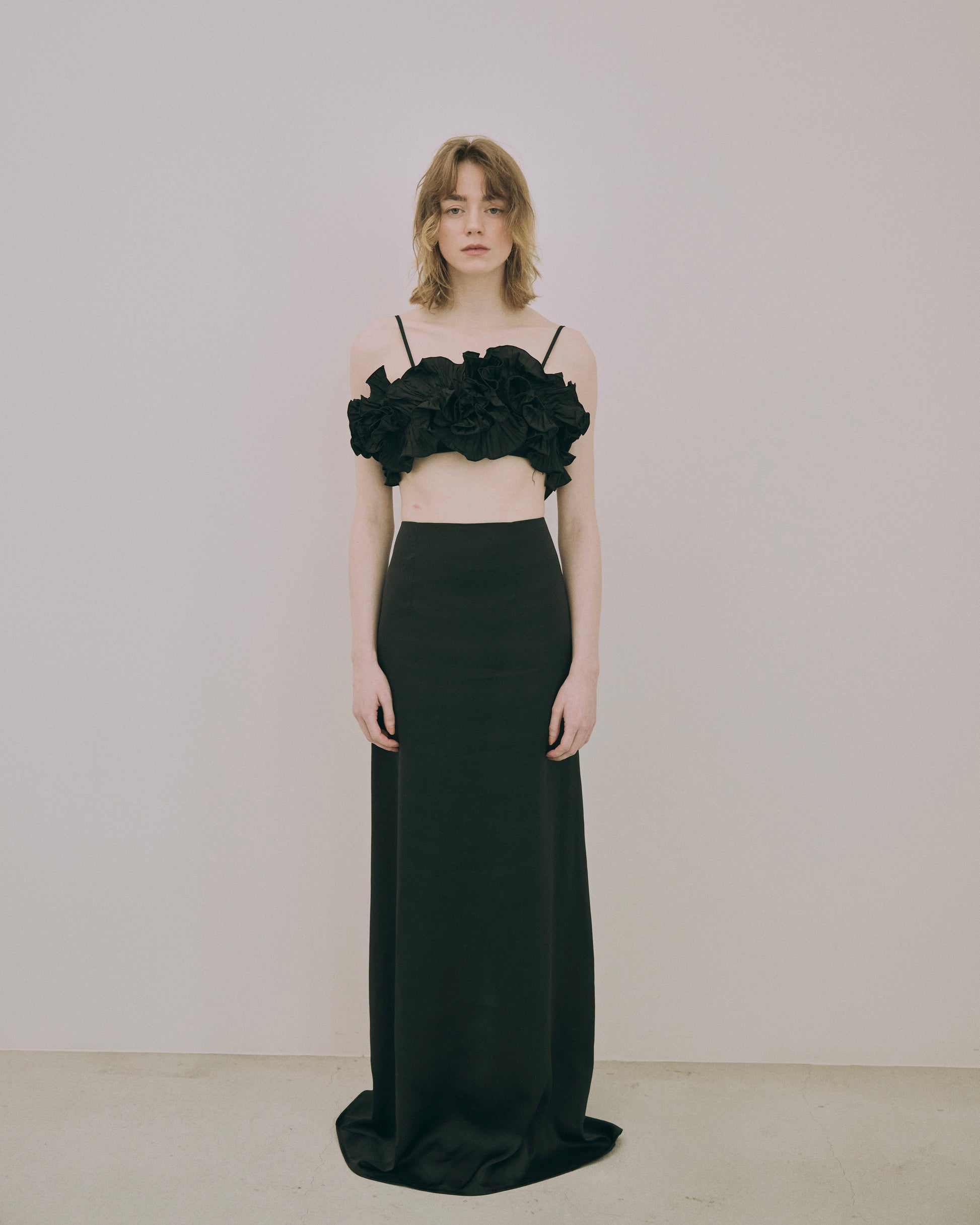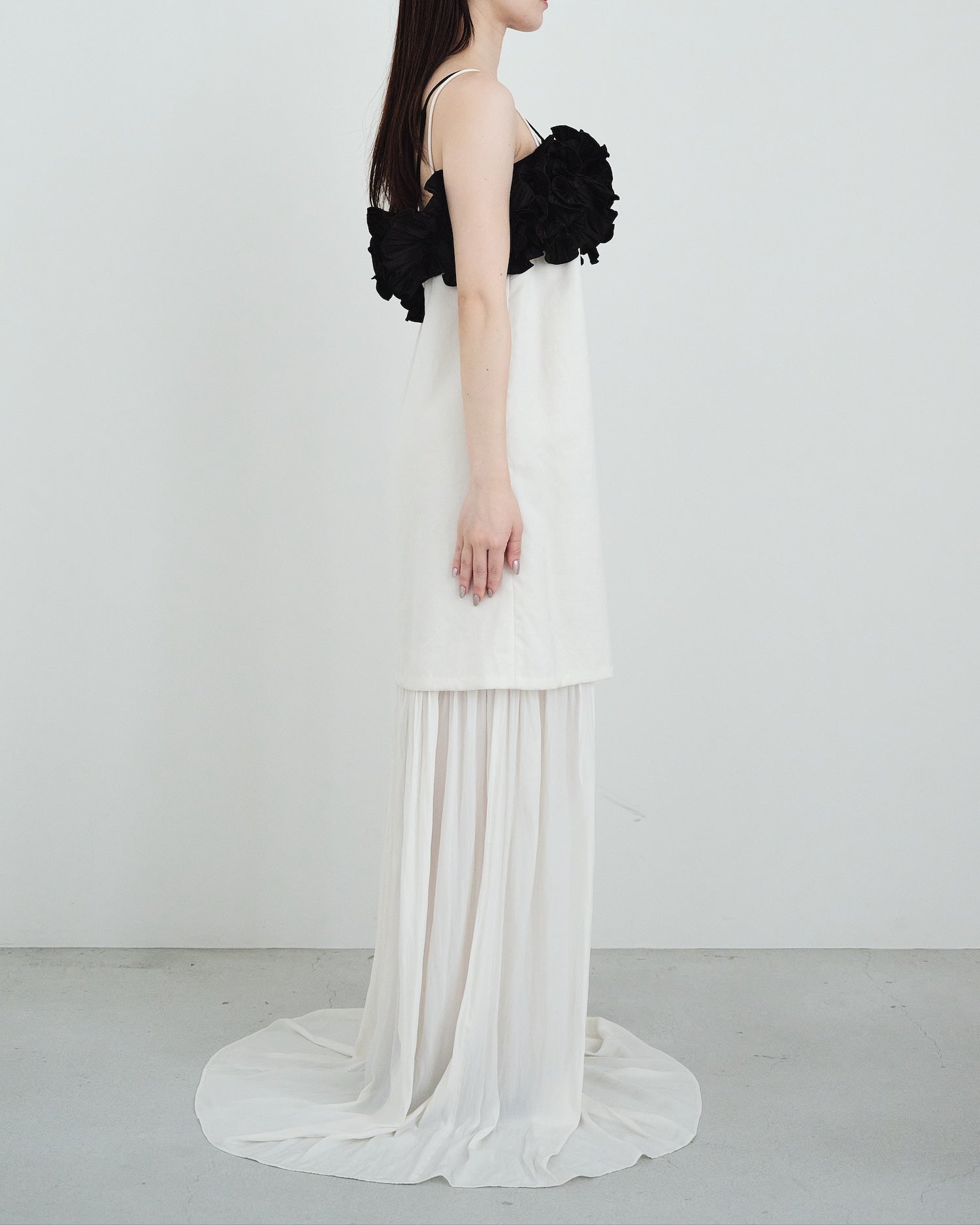 立体的なプリーツパーツをあしらったビスチェ。動きのあるプリーツモチーフがアクセントになり、シンプルなトップスやワンピースに重ねるだけで雰囲気をぐっと変えてくれます。ロングガウンやドレスと合わせれば、二次会やパーティー、オケージョンシーンでも映える華やかなスタイルに。カットソーやシャツ、デニムやワイドパンツに重ねるだけでも、普段のコーディネートに立体感とさりげない華やぎをプラスでき、日常使いにも取り入れやすいデザインです。シンプルなアイテムに合わせるだけで着こなしの印象を変えられる万能ビスチェは、カジュアルにもドレスアップにも対応できる、幅広いシーンで活躍するアイテムです。ウェディングシーでの着用も可能で、シンプルなドレスに重ねれば、華やかなアクセントとして花嫁らしい個性をプラスできます。二次会やブライダルフォト、ゲストドレスとしても活躍し、特別な一日をより印象的に演出してくれる一着です。
