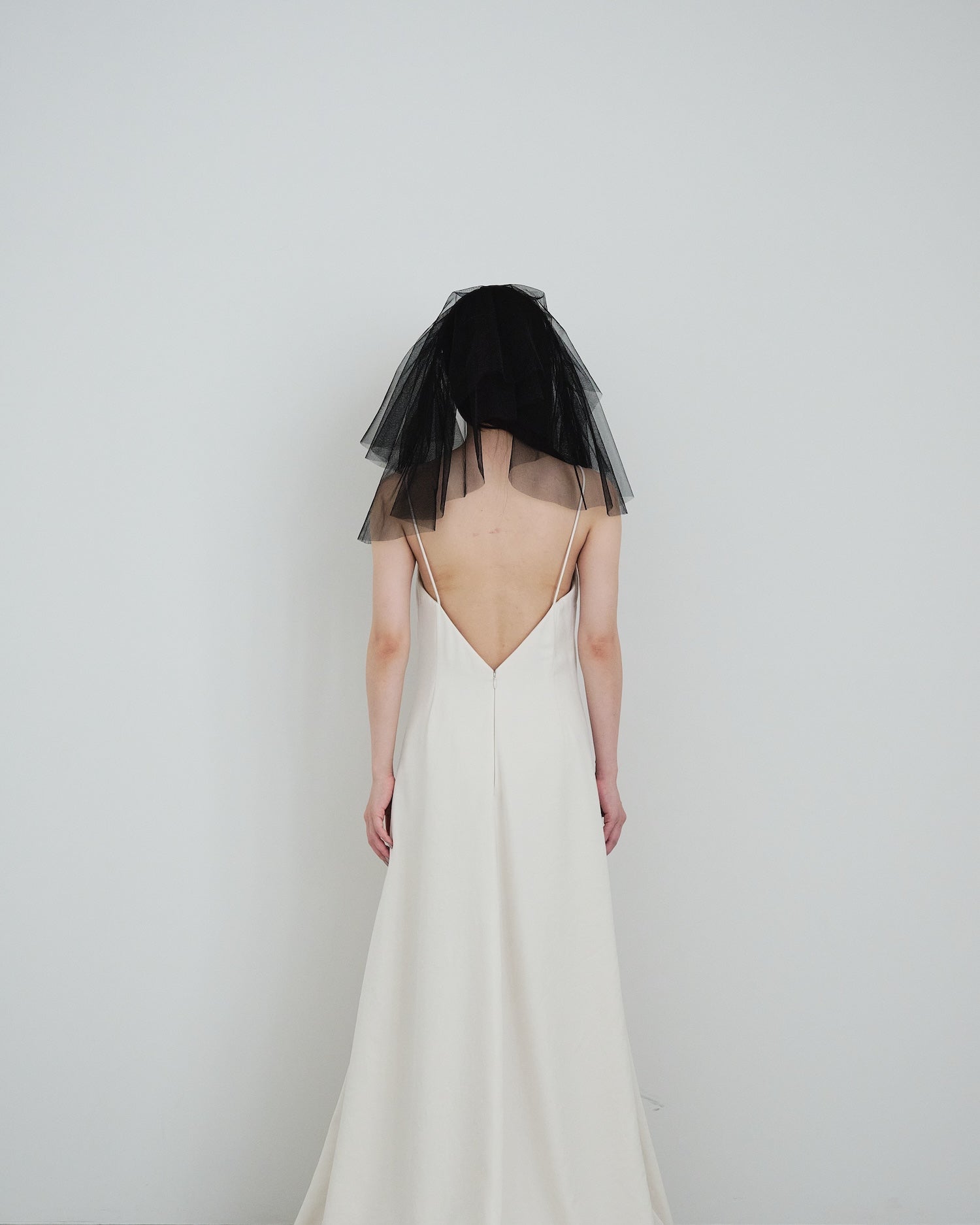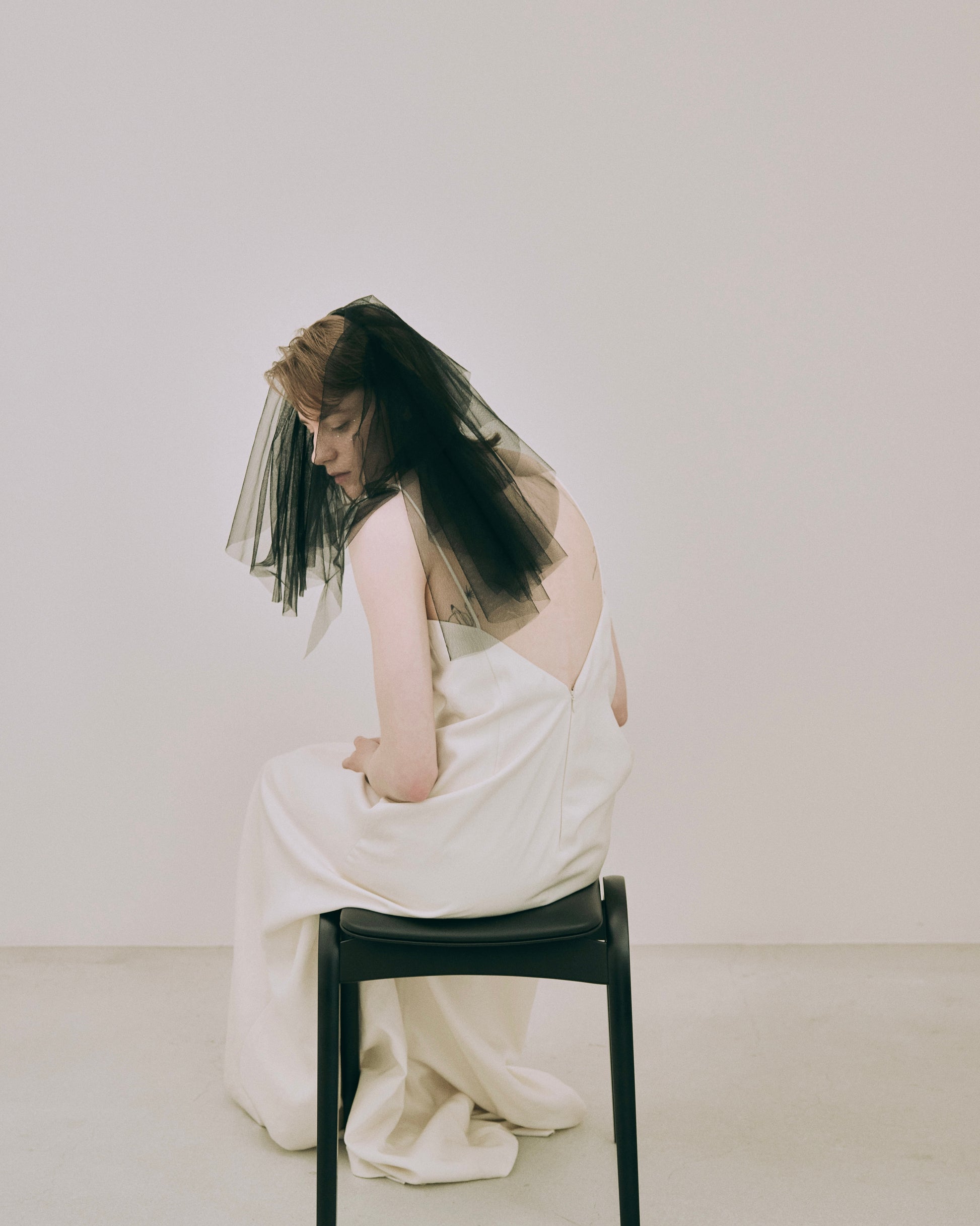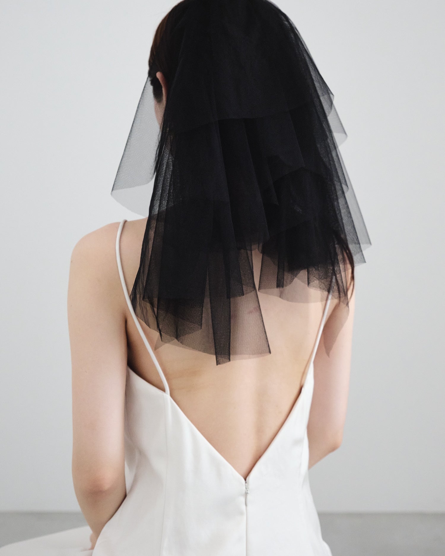 チュールをランダムに重ねることで立体感を生み出したヘッドピース。繊細なチュールのレイヤードが光をやわらかく透かし、顔まわりを華やかに彩ってくれるアイテムです。まるでショートベールのようなデザインは、トラディショナルな花嫁スタイルに新鮮なニュアンスを加え、クラシカルとモダンが絶妙に融合した印象を演出します。